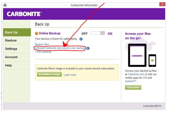 UNFREEZE CARBONITE AND RESUME YOUR BACKUP