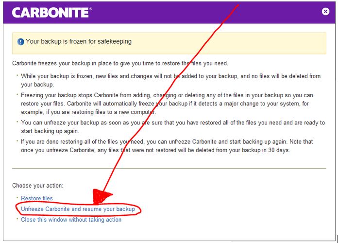 UNFREEZE CARBONITE AND RESUME YOUR BACKUP